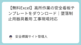 開口部注意の安全看板は、墜落・転落事故を防ぐための重要な安全設備です。覆いや手すりなどの物理的な対策と組み合わせて使用してください。エクセルテンプレートを活用し、現場に合わせた看板をすぐに作成・設置できます。